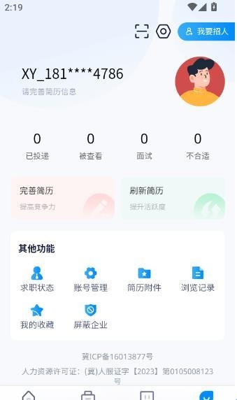 1、大家可以利用自己的技能在线求职,可以享受各类的服务。