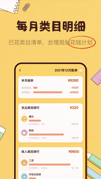 3、每月类目明细:已花类目清单,合理规划花钱计划。
