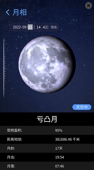 6、不仅能实时观看星图,还支持跳转任意时间,查看当时天空中的星星状态;