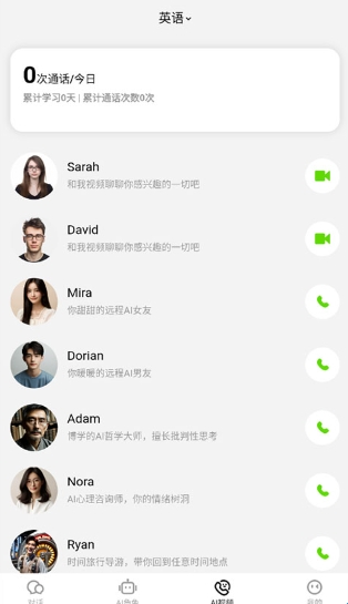 5、除文字和语音外,还可以与ai进行实时电话练习。