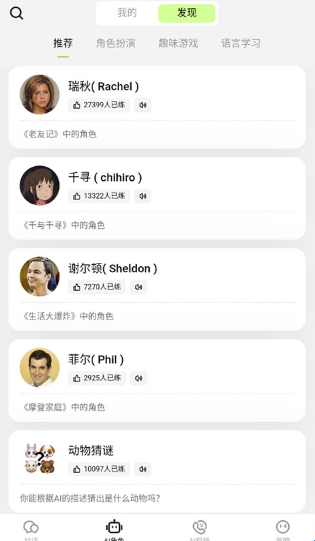 4、多场景话题选择,雅思陪练、ai视频对话、游戏学习、多语言学习等等