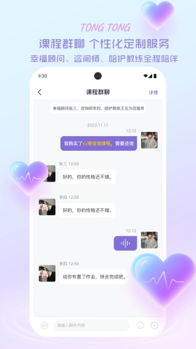 心通通,是一款由成都云聚教育咨询有限公司推出的心理教育资讯软件。软件有着多种功能,涵盖课程群聊,幸福顾问、咨询师、陪护教练全程陪伴,打造个性化定制服务。内置多种专业化的性格测试,在线分析用户内心问题,带你深入了解自己的内心世界,不再为日常生活的事情烦恼,让心事不再一个人扛。