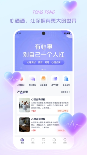 app上提供了丰富的心理课程和学习资源,用户可以在线学习心理知识。
