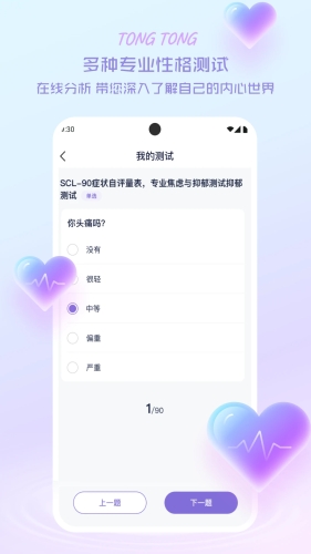 app提供了多种心理测试题库,用户可以随时随地进行心理测试。