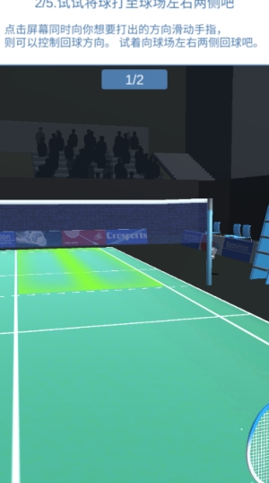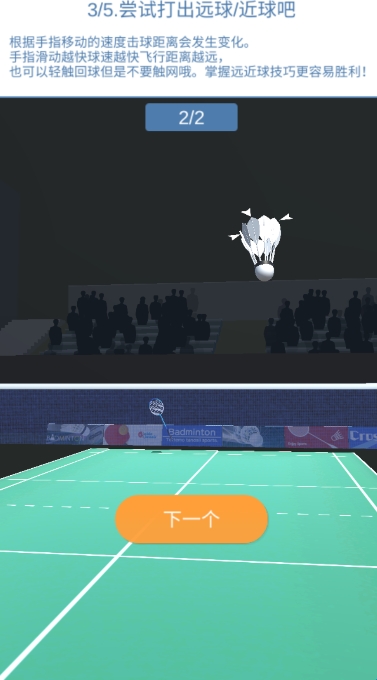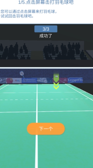 2、玩家点击屏幕就可以击打羽毛球,尝试进行回击。