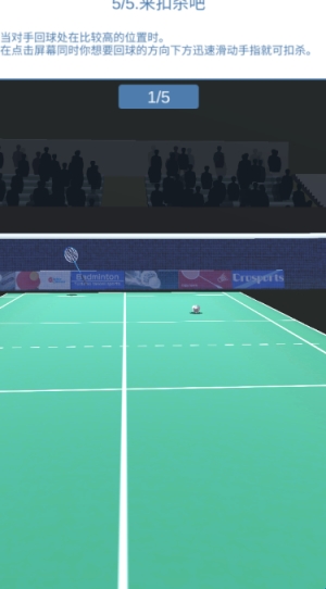 6、当羽毛球在高处时,玩家快速向下滑动就可以扣杀。