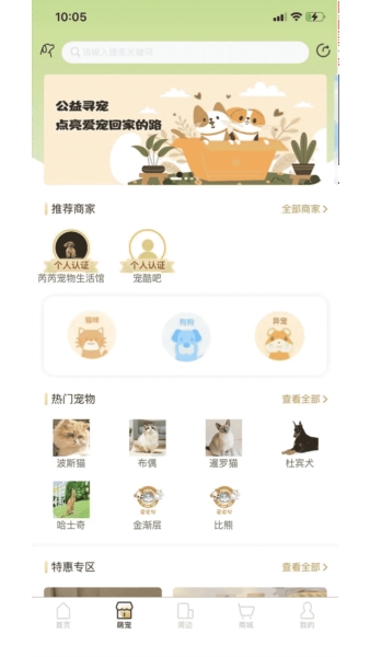 4、宠物领养:还可以帮助许多想要饲养宠物的用户轻松领养宠物,帮助你找到感兴趣的爱宠;