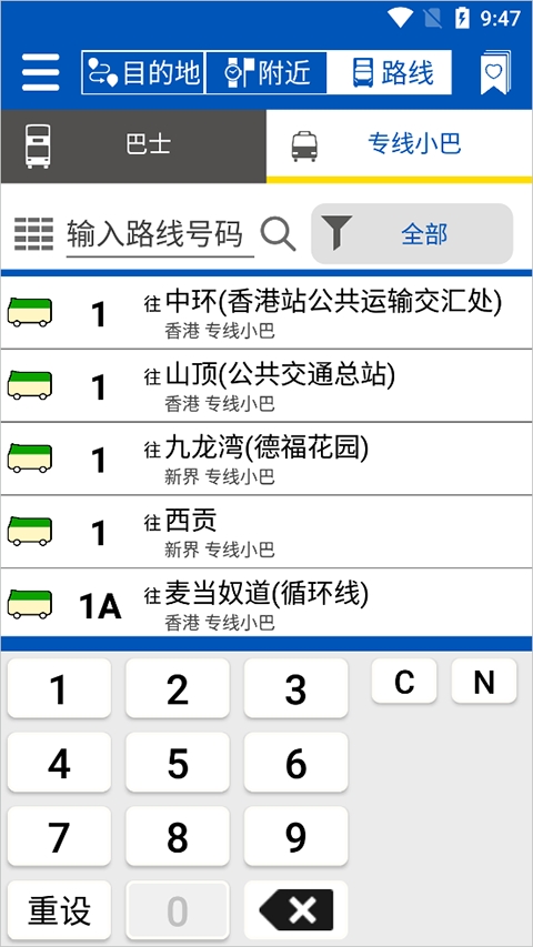 2、附近路线搜索,获取附近所有专营巴士及小巴路线的预计到达时间