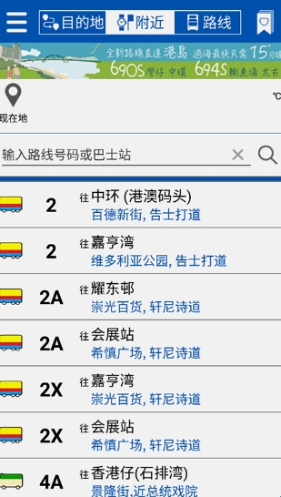 -显示距离当前或所选位置 400m范围内所有路线的下一个巴士 ETA和最近的巴士站;