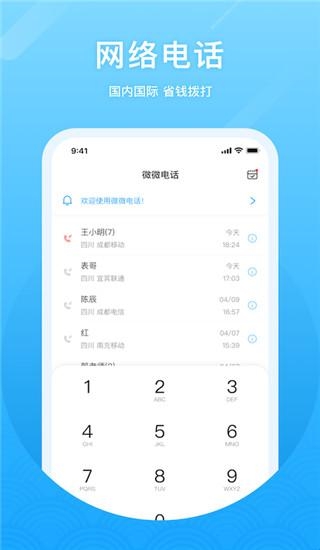 3、免费拨打全球任意手机、座机,对方无需安装微微电话;显示真实手机号码,避免被拦截;