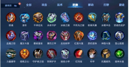 有物理防御、法术防御、血量装备、回血装备和技能冷血装备等,防御装备适合战士、坦克、等英雄,通过穿戴防御装备可以减少来自敌方单位造成的物理或魔法伤害。