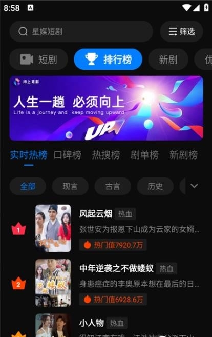 6、在排行榜页面,还可以实时查看最新的短剧排行榜单
