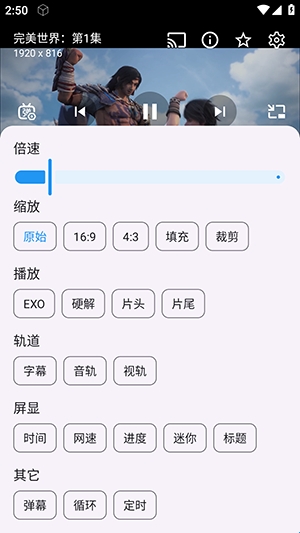 3、点击屏幕,上方有投屏功能,点击设置选项可以自定义播放界面。