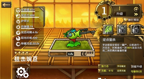 6、在准备界面点击植物图鉴可以查看拥有的植物,点击植物可以消耗金币对其进行升级提升属性。