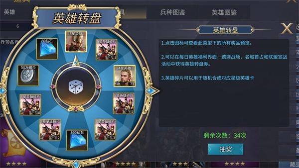 英雄转盘卷和英雄抽奖转盘券中有几率获得四星及五星英雄。