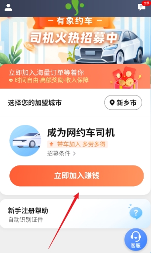 1、打开App后,点击底部的“立即加入赚钱”按钮进入接单流程。