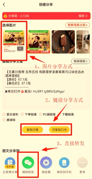 操作完成后,别人用你分享的链接购物后,返利就会到你的账户。