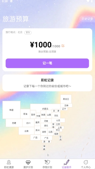 3、存钱计划:彩虹漫步的存钱计划功能帮助用户制定旅行预算,记录各项支出。您可以轻松设置存钱目标,为未来的旅行储蓄,同时监控花费情况,确保您的旅行开支在预算范围内。