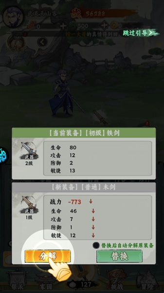 3、如果遇到用不上的装备就分解掉可以获得铜钱和经验,