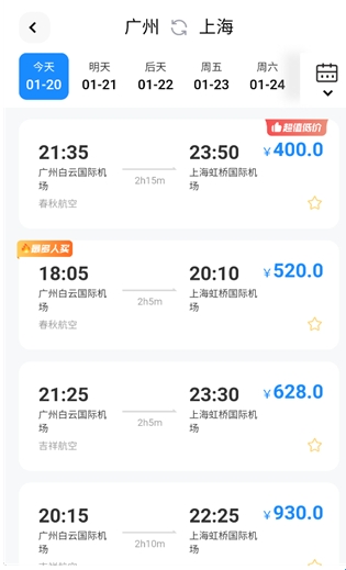 为你提供了非常详细的航班日历,这样用户就能掌握每天的航班出行时间;