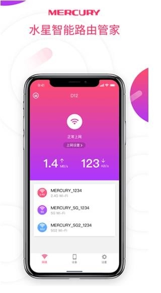 水星WiFi是一款非常好用的手机路由器管理工具软件,这款软件可以帮助用户查看网络的故障问题,也可以将蹭网人员排除在外,让用户获得更加舒适流畅的网络使用体验。软件也支持用户远程管控自己的路由器设备,让用户可以获得更舒适的使用体验。软件的功能丰富,内容多样,有需要的朋友们欢迎下载。