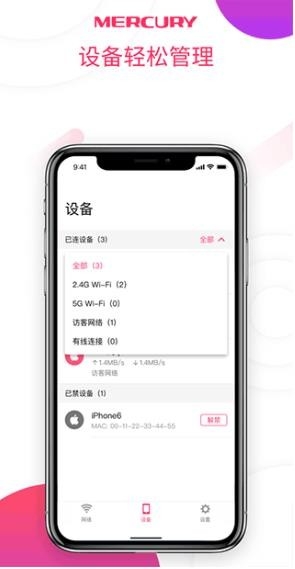 4.管理已连接设备,支持一键禁用、限制上网带宽;