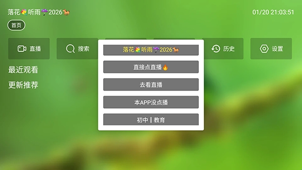 1、进入软件后,会看到此页面,点击左上角的主页选项,作者已经明确表示软件不提供点播,仅拥有直播板块。