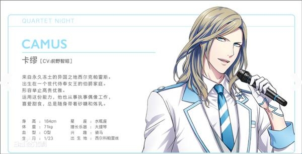 来自永久冻土的异国之地西尔克帕雷斯,出生在一个世代侍奉女王的伯爵家庭,形容举止高贵优雅。运用这份能力,他也从事执事偶像工作,喜爱甜食,总是随身带着砂糖和炼乳。