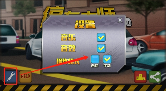 1、进入游戏点击打开设置,我们可对游戏中车辆的驾驶模式进行切换,除此之外还可以开启或关闭游戏中的音乐与音效。