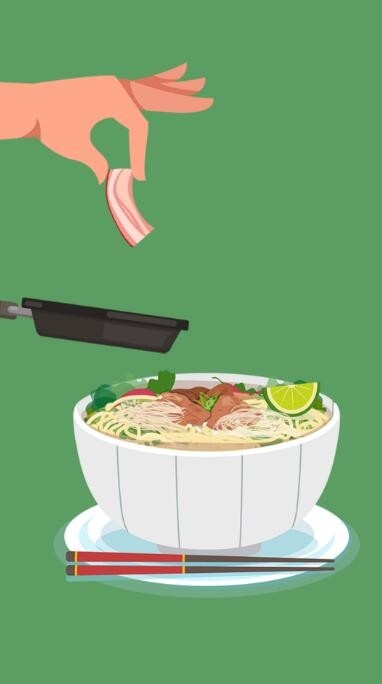 3、培根和任何物品的搭配都毫无违和感,开启有趣的挑战旅程。