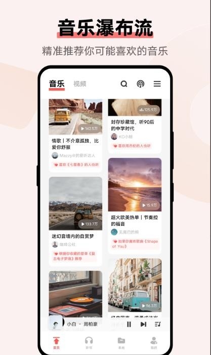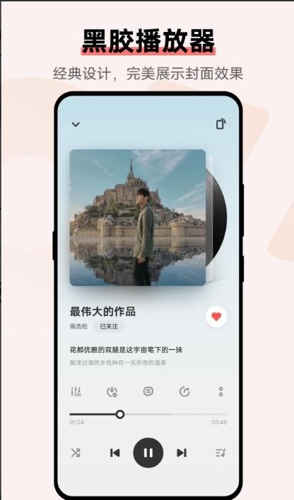 1、简洁的音乐界面设计,不失个性;丰富的资源库,让你不用担心找不到好音乐;