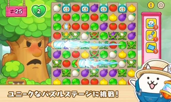 2、将相同的蔬菜配对在一起,完成消除,还可以配对成各种道具助你闯关。