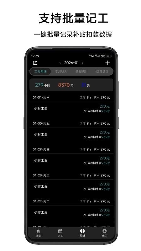 4、提供多种计薪模式,支持时薪、日薪及分段计价,自动计算应得报酬。