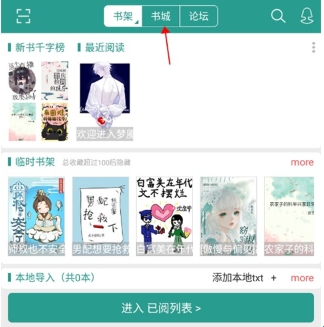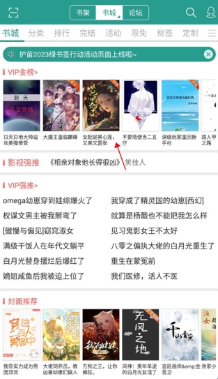2、在书城中找到自己喜欢的小说点击,或者使用搜索找。