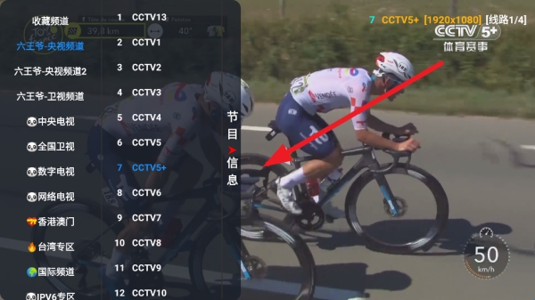 3、如果想看其他节目,可以点击左侧屏幕来更换节目频道。