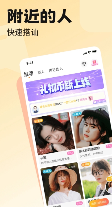 3、实时通话:系统智能匹配附近同城好友,自由选择心仪异性线上交友聊天,遇见附近有趣的灵魂伴侣,告别单身。