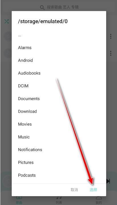 3、点击含有本地音乐的文件,接着点击选择。
