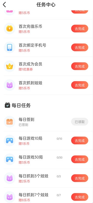 3、每日签到可以领取乐币,每日玩游戏、抓娃娃也可以获取乐币;