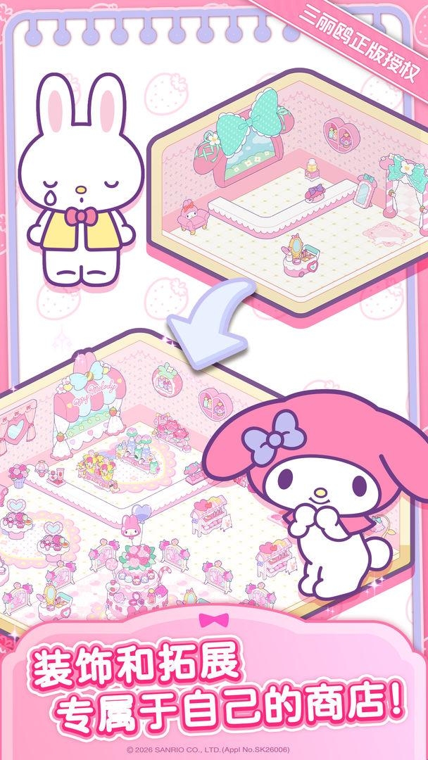 1、装饰专属店铺环节充满创意。你可以以三丽鸥人气角色为主题,打造属于自己的可爱店铺。