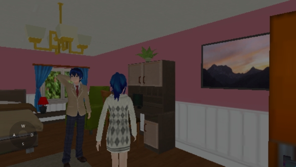 2、跟着游戏人物去走,首先拿起喇叭对女儿和丈夫叫醒服务。