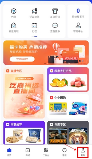 1、下载进入泛嘉行app,点击下栏中我的板块;