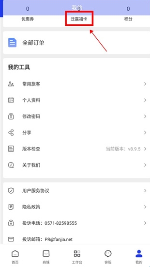 2、在我的页面中点击上方的泛嘉福卡;
