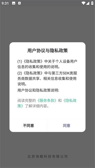 2、阅读服务协议和隐私政策,点击同意并接受即可进入下一步。
