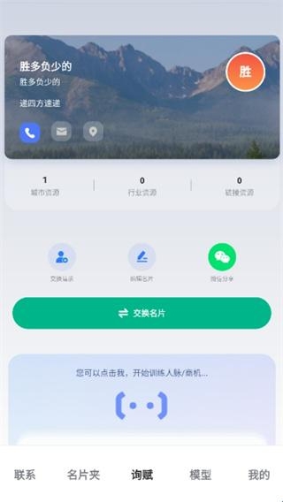 询赋名片会根据你好友的城市、行业等标签,以及好友的人脉资源数量,自动完善你的人脉资源库。
