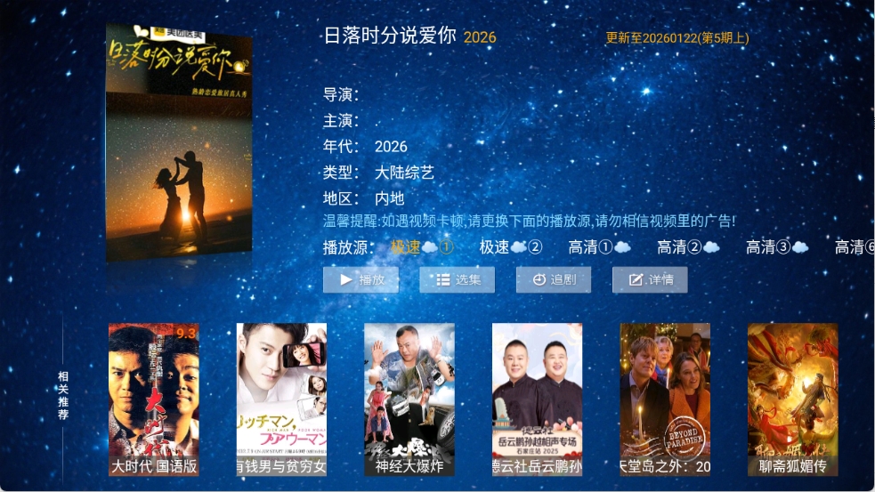 2、界面设计以简洁清爽为核心理念,摒弃冗余广告与复杂菜单,聚焦内容本身,提升大屏观看沉浸感。