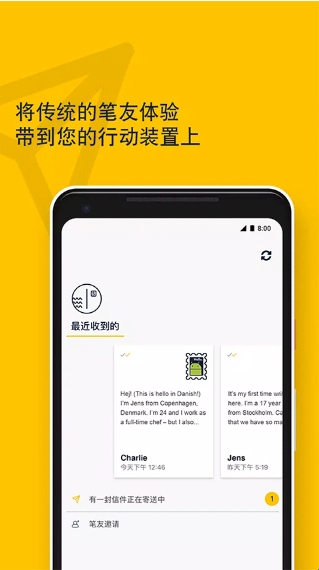 2、距离使交流更真实,系统会根据笔友所在位置计算派送时间,写封有意义的信,耐心期待回复吧!