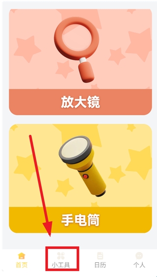 1、打开灵动放大镜app,进入后点击小工具;