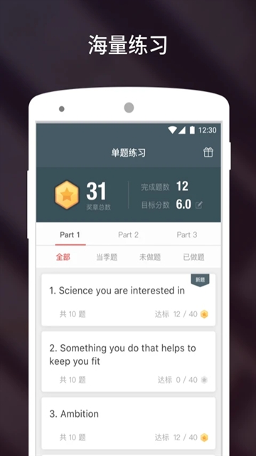 提供丰富题库和分类练习,包括机经高频题、口语真题和热点话题,支持循环训练和即时反馈,强化记忆和答题技巧,助力短期内提升成绩。