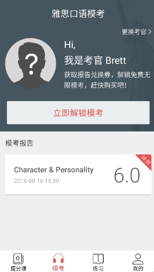 1、逼真还原,整个模考过程完全复现真实雅思口语考试现场;