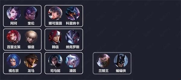 aov传说对决英雄对照表